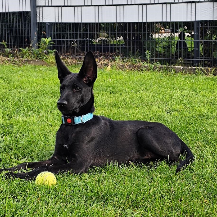 Von der Stubenreinheit hat er inzwischen eine Idee und wenn man ihn gut beobachtet, geht auch nur noch selten etwas schief. Die kleine Lakritznase kann gerne zu Kindern oder auch hundeerfahrenen Katzen ziehen.